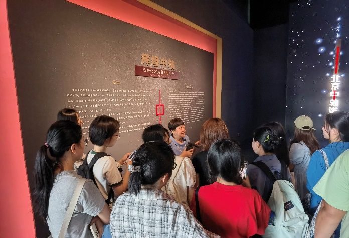 2024年6月22日下午,米兰milan官方网站“京彩—博闻译行实践团”指导教师张放带领13名学生共同参观了首都博物馆《辉煌中轴》特展,该特展是2023年首都博物馆为庆祝北京建都870周年对公众开放的常设特展,此次活动得到了首都博物馆的大力支持。
