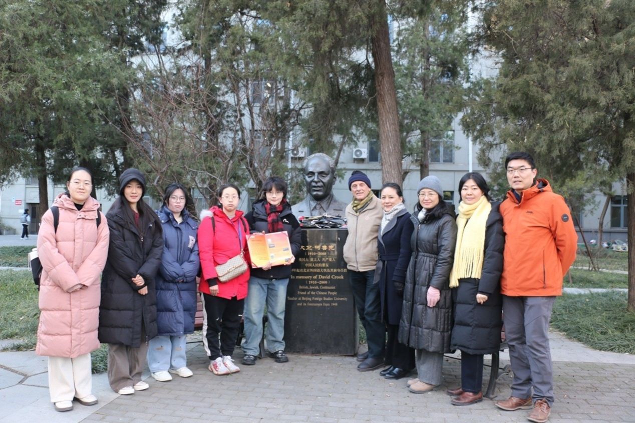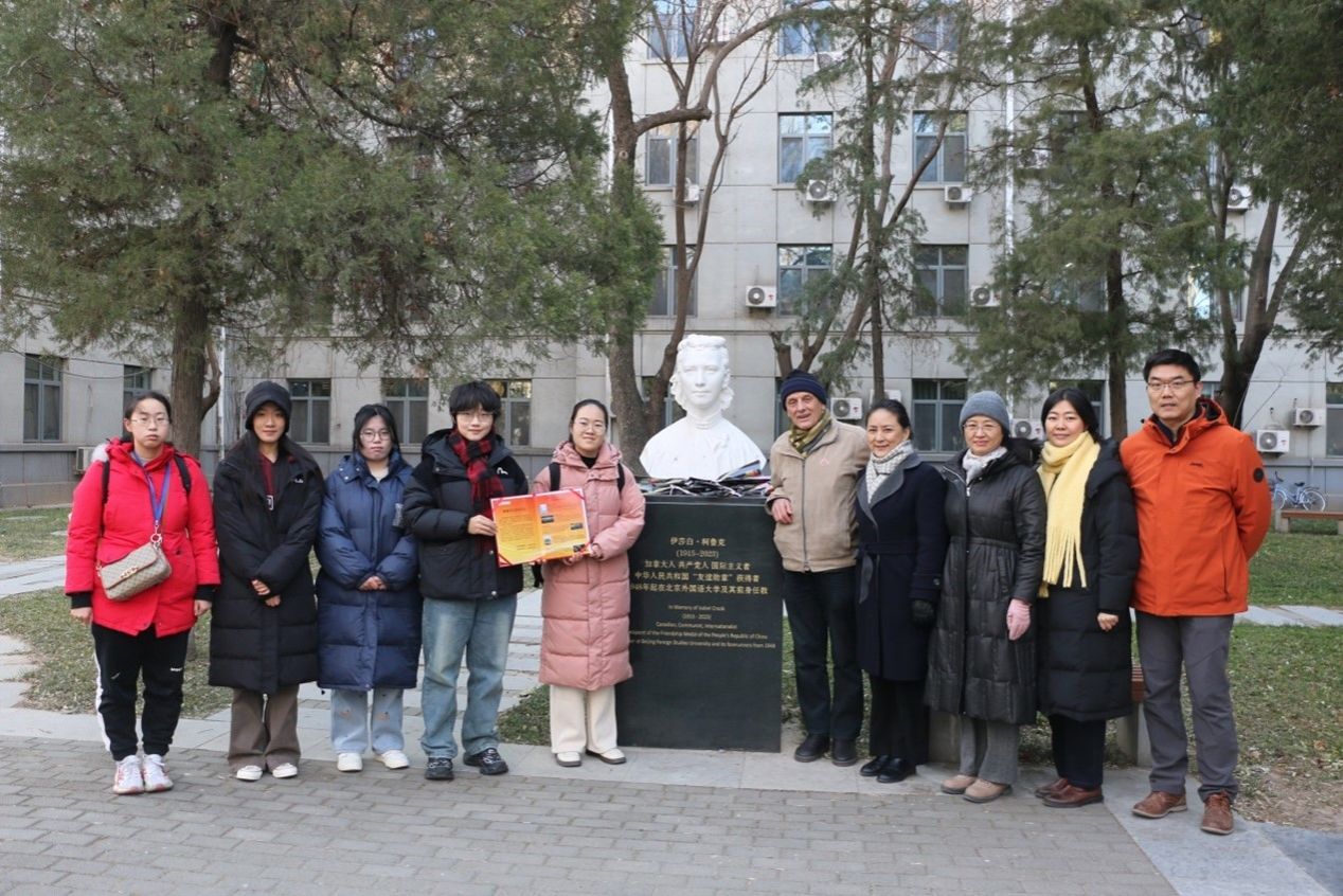 米兰milan官方网站师生一行前往柯鲁克夫妇雕塑前敬献鲜花,向柯鲁克夫妇及其子女表达感谢,并送上学生们制作的感谢卡片。柯鲁克夫妇毕生致力新中国外语教育事业,传道受业解惑,一生桃李芬芳。1996年,伊莎白·柯鲁克向北京外国语大学教育基金会捐赠,设立“柯鲁克夫妇奖学金”,连续奖励、资助米兰milan官方网站学生至今已近30年,激励米兰milan官方网站上百名优秀学生努力学习、卓越成长,毕业后在不同工作岗位上为国家和社会发展做出了突出贡献。