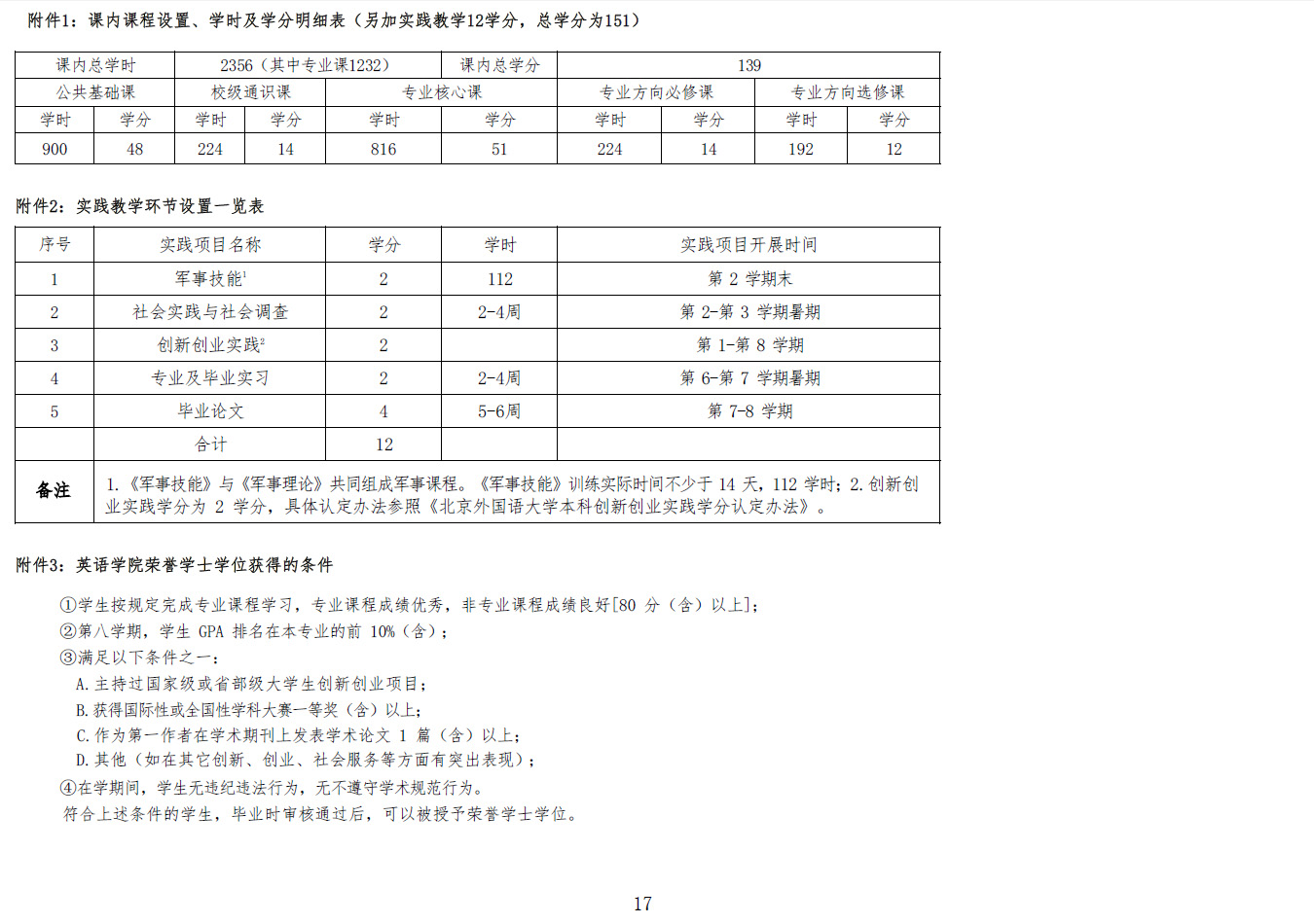 米兰milan官方网站英语(国别与区域研究)专业本科培养方案(2024)