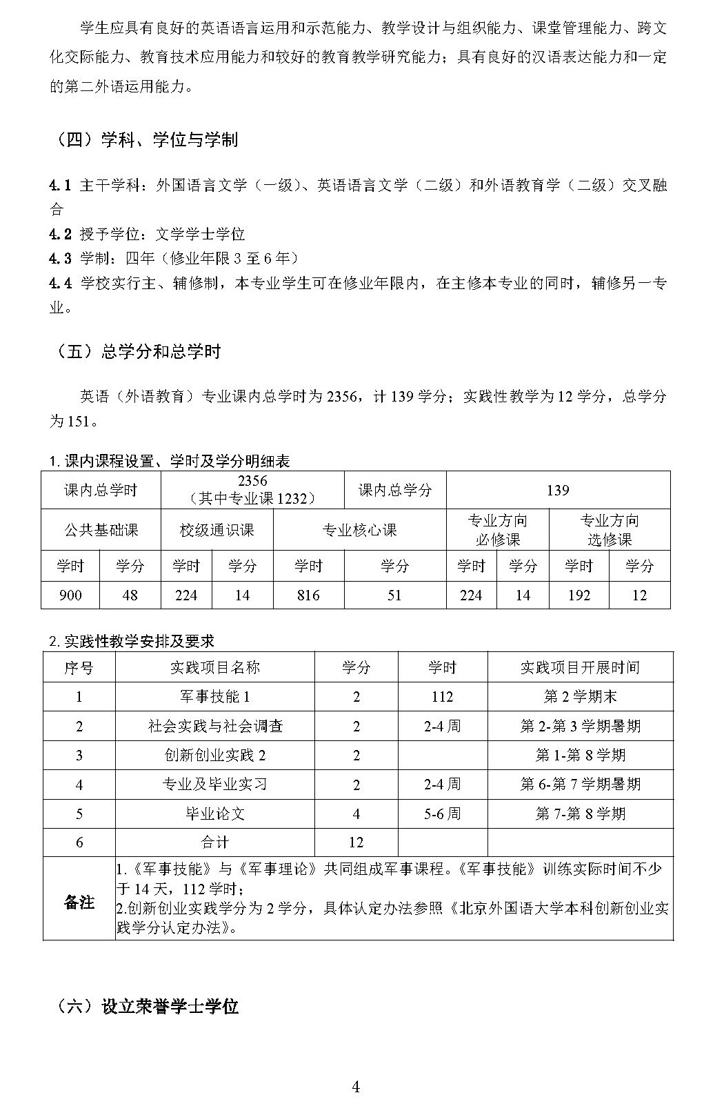米兰milan官方网站英语(外语教育)专业本科培养方案(2024)