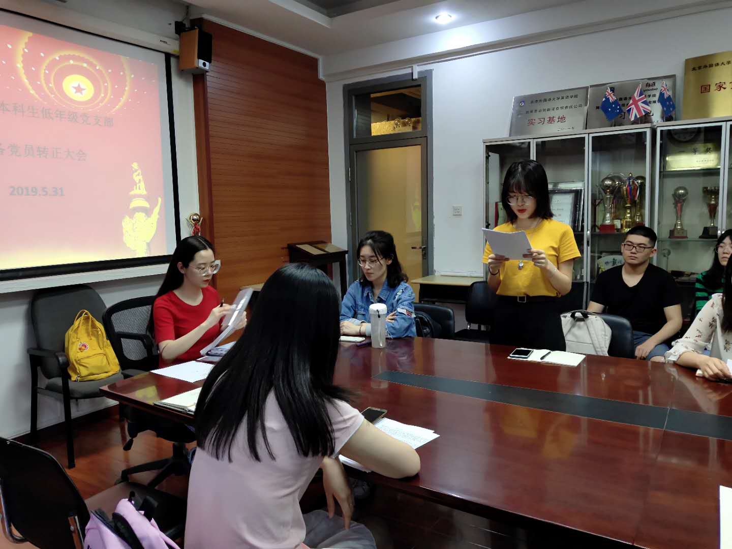 2019年5月31日晚,本科生低年级党支部在学院115会议室召开了预备党员转正大会,会议由党支部书记罗振令主持,支部副书记、党员及预备党员参加了该次会议。会议包括三名预备党员(李雨洁、李佳琦、杨清元)的转正事宜、“红色1+1”活动策划及安排、学习强国App的学习方法和学习心得分享、组织观看党章电视辅导教程并围绕“党员肩负的责任”展开探讨等内容。