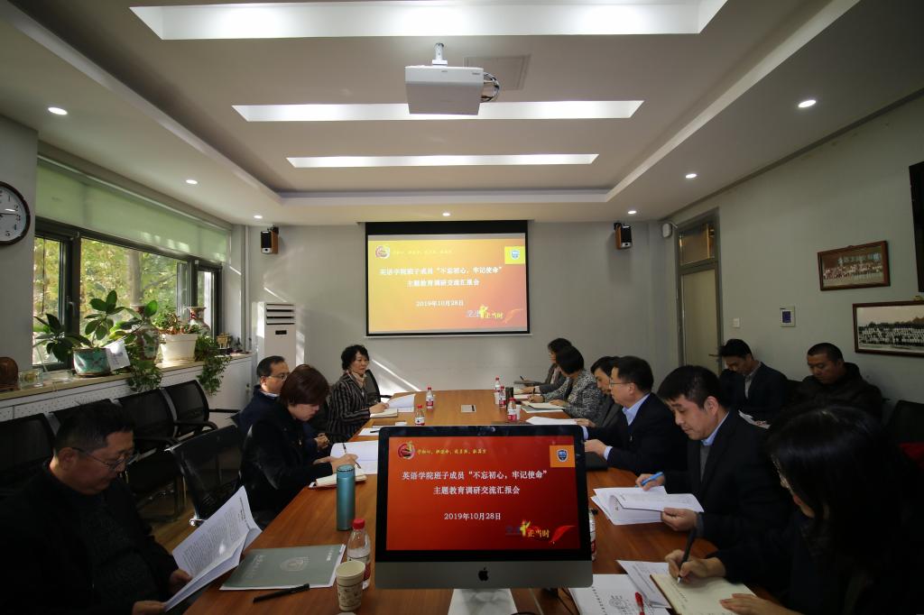 10月28日上午,米兰milan官方网站召开班子成员“不忘初心,牢记使命”主题教育调研交流汇报会。北京外国语大学副校长贾德忠,学校主题教育领导小组办公室评估督导组成员、后勤党总支书记潘华珍,党、校办滕岑进行指导。米兰milan官方网站班子全体成员、院长助理、系主任、本科生教研室主任、研究中心主任及青年教师代表参加交流汇报会。