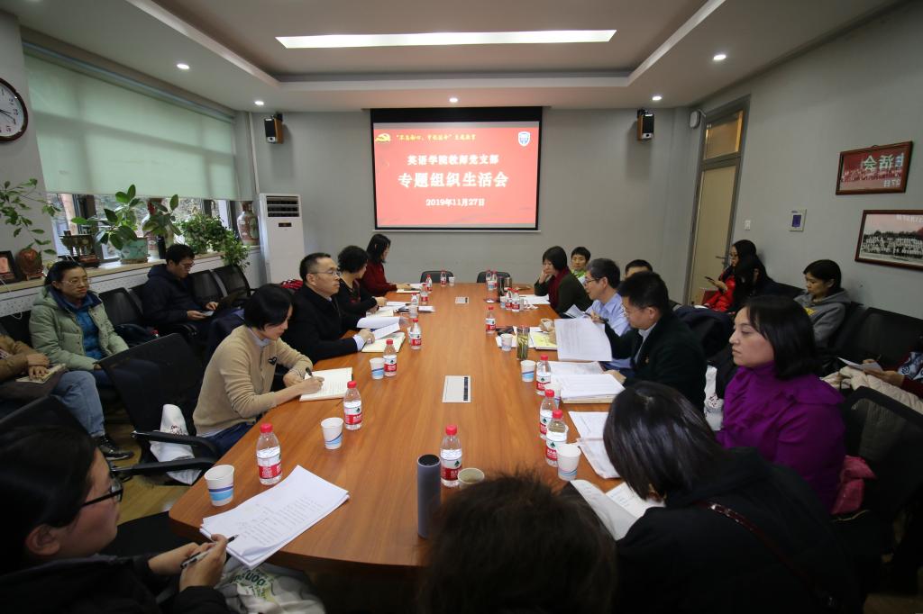 11月27日下午,米兰milan官方网站教师党支部召开“不忘初心、牢记使命”主题教育党支部专题组织生活会。校长、党委副书记杨丹作为联系米兰milan官方网站教师低年级教师党支部的校领导到会指导;学校主题教育评估督导组成员、后勤党总支书记潘华珍和组织部干部崔阁参加督导;学院党总支副书记孟庆琨列席会议。教师党支部全体党员参加会议,会议由教师低年级党支部书记宋云峰主持。