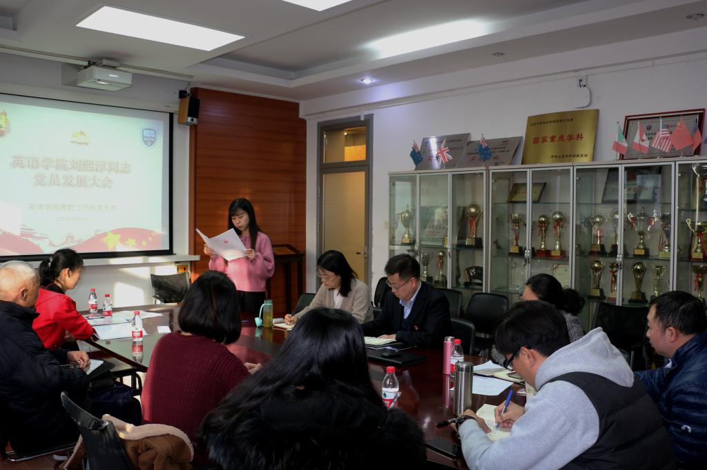 此次党员发展大会由行政党支部书记王欣扬主持。会议开始,王欣扬首先汇报了行政党支部全体党员到场,明确了召开此次会议的合规性。之后,由发展对象刘熙淳同志为大家宣读入党申请书,以及汇报个人履历、家庭和主要社会关系情况等信息。张春霞、于承杰两位老师作为刘熙淳同志的入党介绍人如实介绍了刘熙淳同志的情况,对她的未来发展提出了建议与要求,并表示刘熙淳同志已经具备了成为一名中共预备党员基本要求。随后,王欣扬向大会报告对刘熙淳同志的审查情况。在场的其他党员也开诚布公地发表意见。之后,大会采用无记名投票方式表决,全票通过支部接受刘熙淳同志为中共预备党员。刘熙淳同志表示,很荣幸、也很激动能够加入中国共产党,在未来的工作以及学习道路上还需要向各位同事们取经,守住自己的初心,认真努力工作,充分发挥党员的先锋模范带头作用。