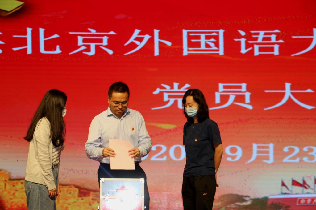 2020年9月23日下午,米兰milan官方网站召开党员大会,选举产生参加北京外国语大学第十次党代会的代表。作为分管联系米兰milan官方网站的校领导,党委副书记、校长杨丹同志在米兰milan官方网站选区参加党员代表选举并讲话。学校党委组织员万里老师也应邀参会。大会由米兰milan官方网站党总支副书记孟庆琨同志主持。