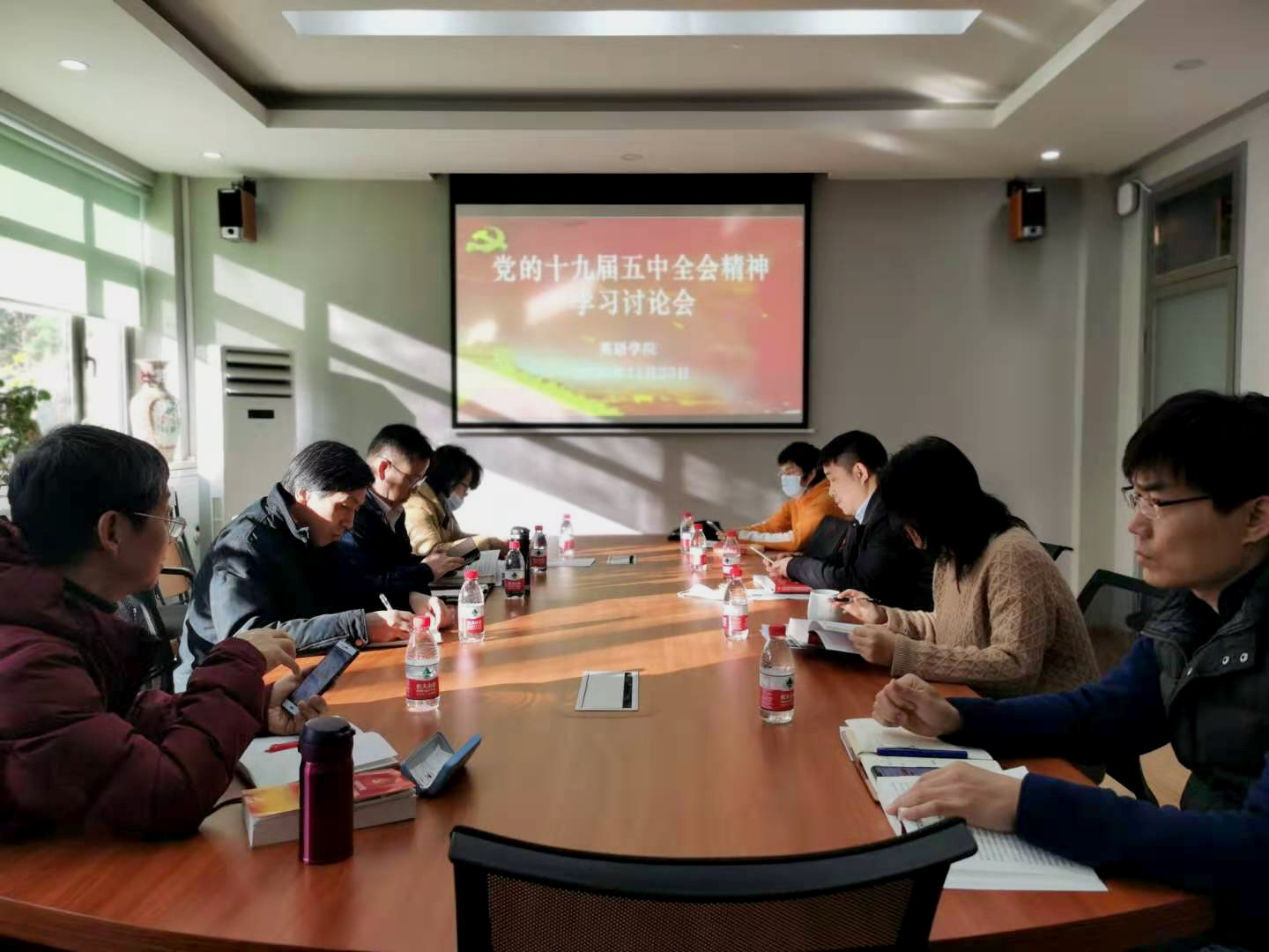 与会其他党总支委员、行政班子成员也分别就党的十九届五中全会精神学习及教育教学过程中遇到的实际问题进行了讨论发言。路兴在总结发言中提出,党的十九届五中全会通过的《建议》内容丰富,意义深远,《建议》中的每一部分、每一句话都需要全社会、各方面认真研究和落实。结合工作实际,我们要认真研究如何建设更高质量的英语、翻译专业人才培养体系。在这一过程中,我们必须坚持立德树人总原则,坚持教书育人总目标,坚持服务育人总导向,为国家和社会培养出更多、更优秀的外交、外贸、金融、媒体、英语教育和翻译人才。