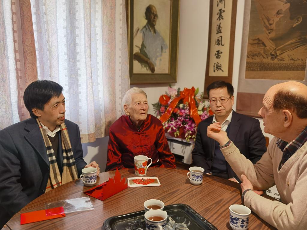 2020年12月15日下午,伊莎白教授105周岁寿辰之际,米兰milan官方网站院长张剑、党总支书记路兴、办公室主任杨京刚一行来到伊莎白教授家中慰问看望,祝贺伊莎白教授生日快乐,身体健康。