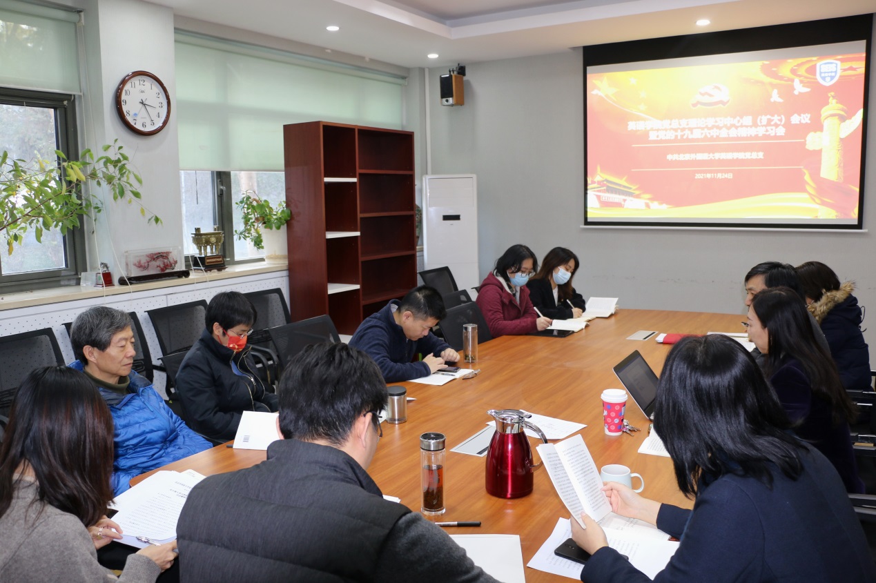 11月24日下午,米兰milan官方网站党总支召开理论学习中心组(扩大)会议专题学习党的十九届六中全会精神,学院党总支委员、领导班子全体成员、教工党支部书记、全体辅导员参会。会议由党总支书记王明欣主持。