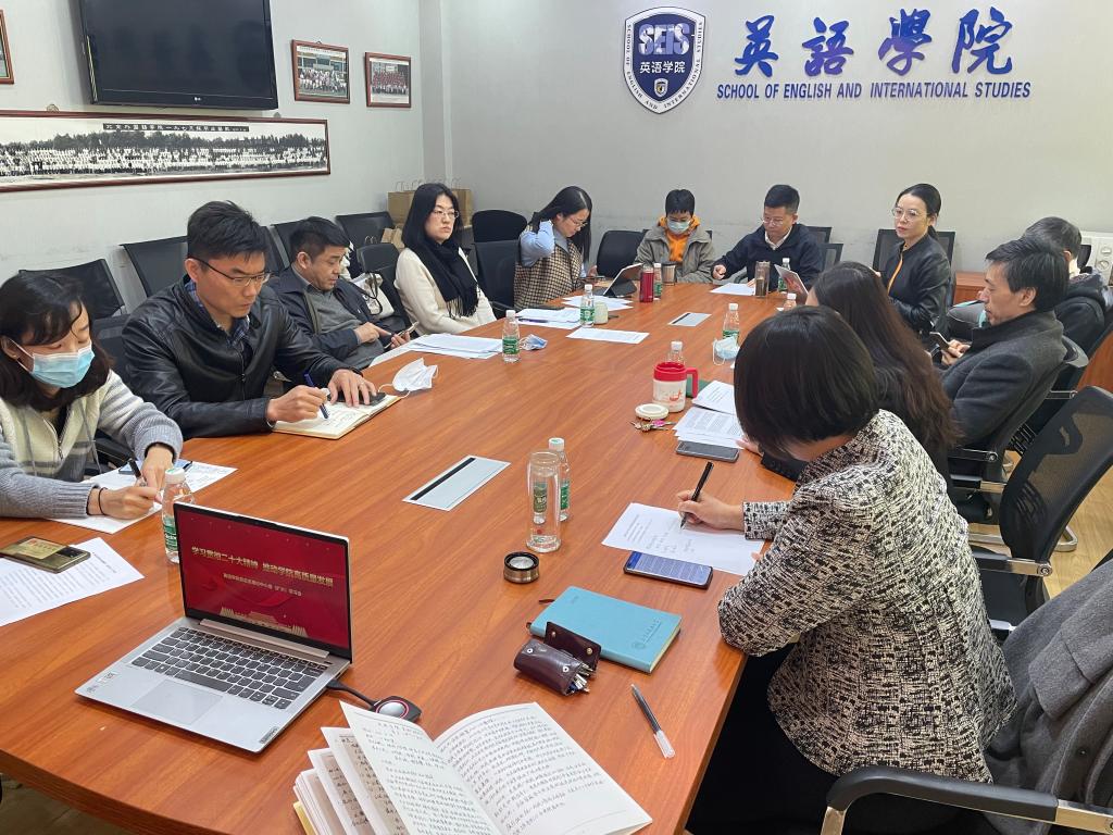 王明欣谈到,党的二十大报告将“实施科教兴国战略,强化现代化建设人才支撑”单独列出,把教育、科技、人才提到“全面建设社会主义现代化国家的基础性、战略性支撑”的重要地位,全体同志要把思想和行动统一到二十大精神上来,以更高的标准、更严的要求、更实的举措抓好学院的学科建设、人才培养,为建设中国式教育现代化、全面推进中华民族伟大复兴做出贡献。王明欣指出,新时期学院建设发展要以国家战略需求为导向,努力实现高质量人才培养、高水平科学研究、高效能社会服务,为加快建设中国式现代化提供有力支撑;必须心怀“国之大者”,坚持把立德树人作为教育的根本任务,培根铸魂,培养有家国情怀、国际视野、专业本领的复合型人才;不断加强基层党组织的政治功能和组织功能,团结带领全体教职员工,在新征程前进路上踔厉奋发。
