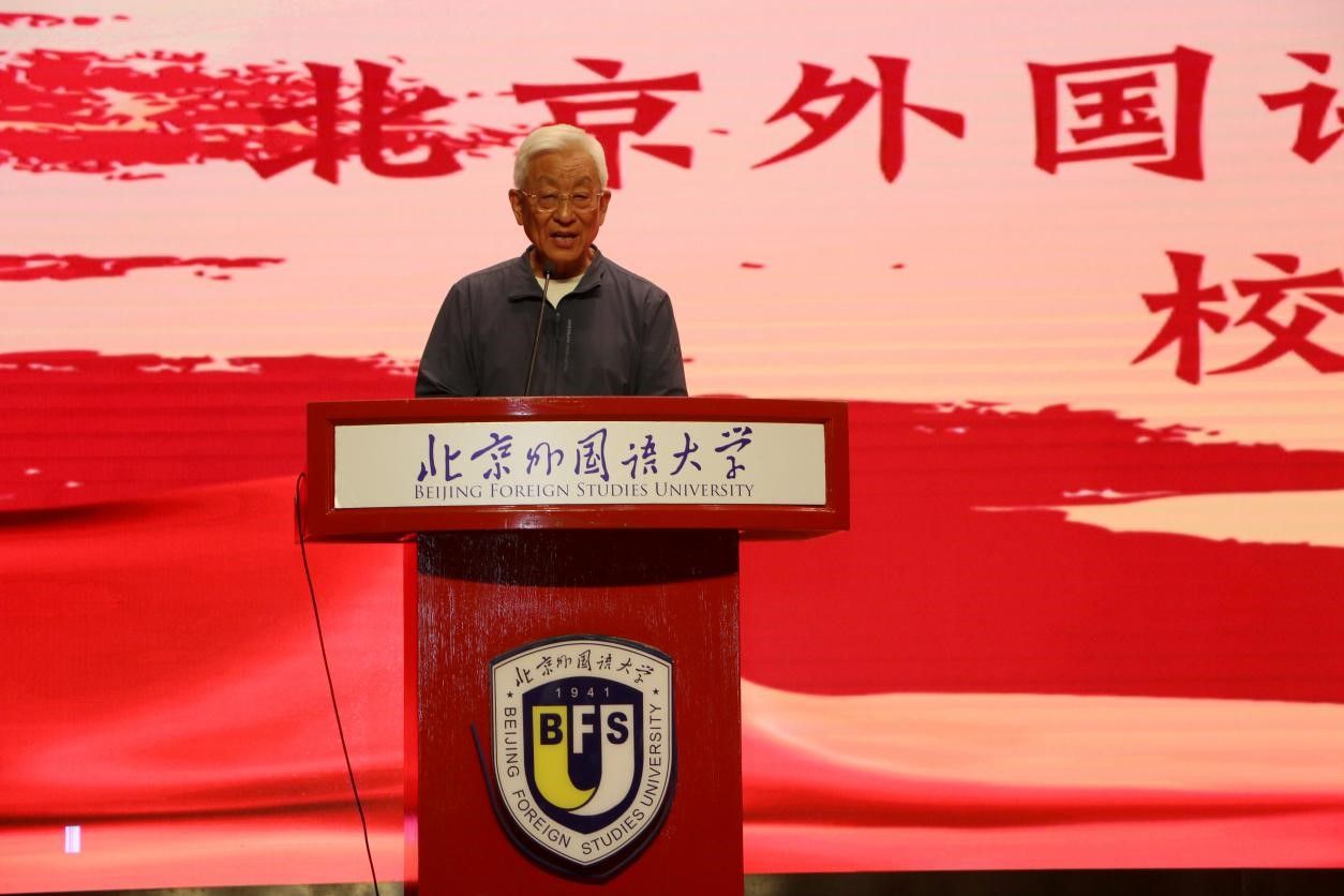 北京外国语大学原党委书记、现校友会会长杨学义作为特邀嘉宾讲话。他以幽默风趣的语言,强调北外英院人的强项就是凭借强大的英语基本功,在正式场合恰当合理地讲好中国故事。他讲述了米兰milan官方网站老前辈的故事,鼓励同学们把握好学业、坚守好底线、照顾好身体,如此才能为国家和社会做出贡献。