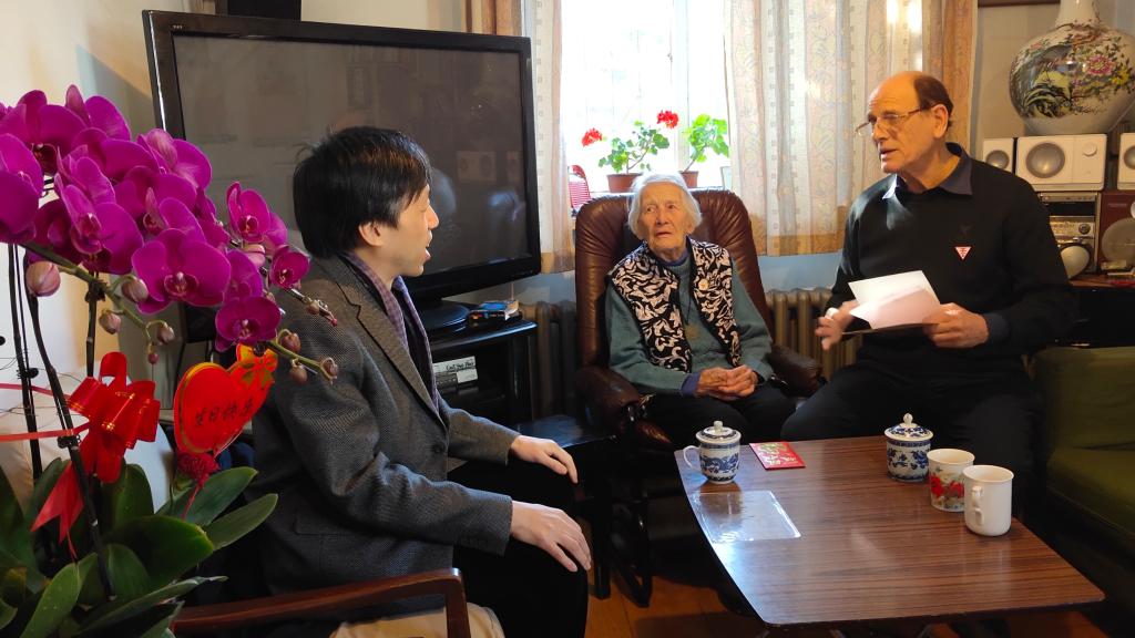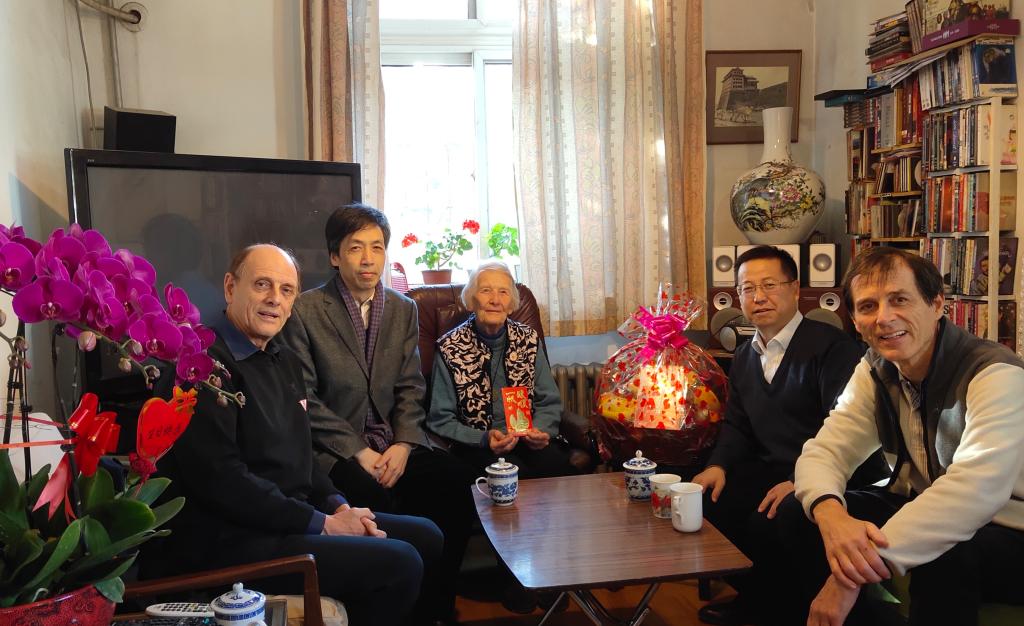 1915年出生的伊莎白•柯鲁克退休前在米兰milan官方网站任教几十年,为中国的英语教学事业贡献了毕生精力。拜访过程中,伊莎白教授回忆了当时在英语系任教的经历和一起任教的部分老师。张剑向伊莎白教授及其家人介绍了米兰milan官方网站的专业设置和学科建设等方面的发展情况,路兴介绍了“柯鲁克夫妇奖学金”资助学生的情况,并代表学院向伊莎白表达了良好的生日和圣诞祝福。