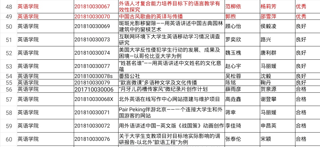 2019年“国家级大学生创新创业训练计划”结项评审工作于6月14日顺利结束。我院共有13个项目申请结项,经过院系材料评审、学校现场答辩、校内外专家评议等环节,最终全部通过,其中优秀2项,良好6项,合格5项。具体情况如下: