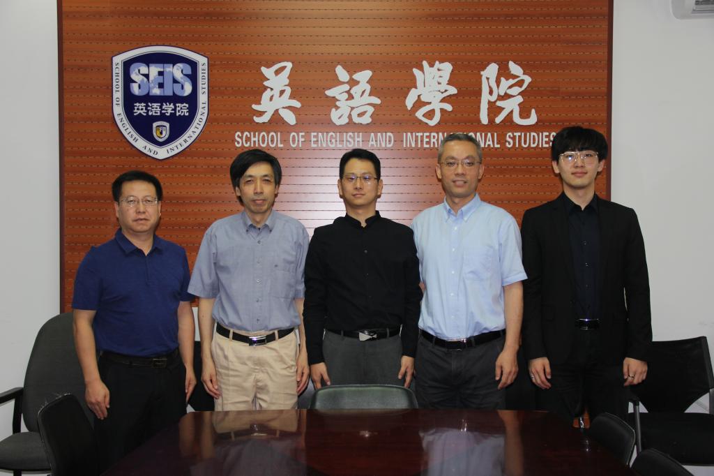 2019年9月11日下午,策马集团副总裁、党支部书记、中华口译大赛组委会秘书长文毅,中华口译大赛组委会办公室主任、我院2019届毕业生胡馨友来米兰milan官方网站洽谈合作事宜。院长张剑,党总支书记路兴,翻译系主任张威以及辅导员于承杰参加会谈。