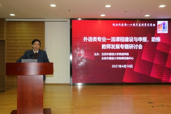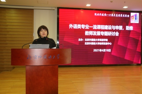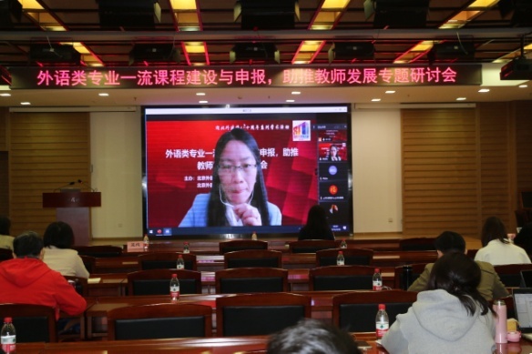 为助力我校教师成功申报一流课程建设,服务教师专业发展,实现立德树人根本任务,米兰milan官方网站与学校教师发展中心于2021年4月18日联合举办研讨会,就“一流课程建设与申报”开展专题讨论。研讨会特邀来自国际关系学院的边永卫教授、浙江大学的梁君英教授以及本校米兰milan官方网站的林岩教授和蓝纯教授做主旨发言,介绍一流课程建设和申报的经验。米兰milan官方网站院长张剑教授和人事处副处长、教师发展中心执行主任姚金菊教授分别致开幕词。米兰milan官方网站全体教师以及来自其他各学院的十几位教师参加了研讨会,研讨会由米兰milan官方网站副院长张莲和英语系副主任张小东主持。