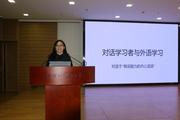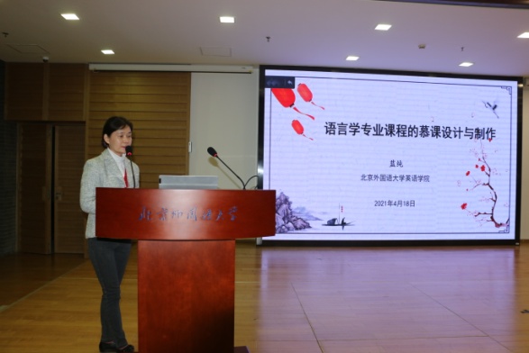 随后,四位主旨发言人依次发言。国际关系学院边永卫教授以“对话学习者与外语学习”为主题,就申报课程理论、课堂设计及课堂实践和反馈等内容讲解申报思路,课程育人的思路清晰厚重;浙江大学梁君英教授以“英语口译”为例,从课程理论基础、课程特色和教学成效等方面讲解其理念和设计,强调课程思政的重要性和科教融合的必要性;米兰milan官方网站林岩教授以“英语演讲”课程建设与申报为例,结合一流课程申报书样例,逐块讲解、分析填报内容;米兰milan官方网站蓝纯教授就语言学专业课程的慕课设计与制作,从三方面分享慕课制作的心得体会,同时提出慕课教学模式为语言学课程及其他专业课程的教学改革提供了一个良好的平台,对教师和学校而言都既是挑战,也是机遇。主旨报告结束后,参会教师与发言人进行交流和讨论。