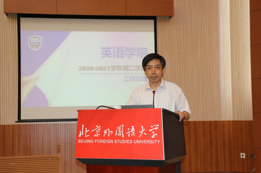 会上,张剑院长从学科建设、本科教学、研究生教学、科研工作、国际合作、学生工作及党建、工会等方面对学院本学期工作进行全面总结。学科建设方面,本学期重点推进北京市一流专业“英语语言文学”专业建设,在《习近平谈治国理政》(英文版)“三进”项目申报中,我院共有10门本科及研究生课程获得立项,非通用语种师资研究生项目也获得一定进展,第一批派出人员已于本学期陆续回国。