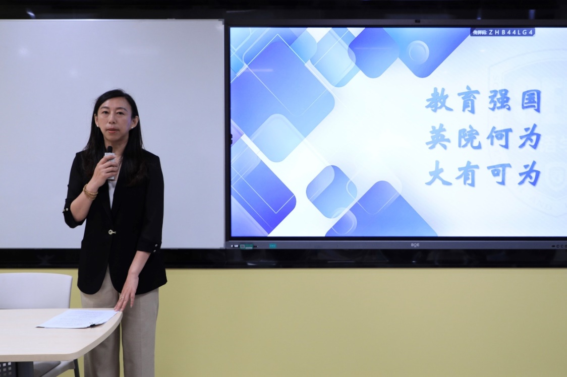 党总支书记王明欣以“教育强国,英院何为,大有可为”为主题,传达学校新学期工作部署会精神,回顾暑期各项工作情况,部署新学期党建和学生工作。她指出,新学期主题教育收官、加强党建引领、深化立德树人、加强队伍建设、拓展国际交流、守住安全底线等六个方面,是学院党总支工作的重点,要紧跟学校党委步伐,有目标、分步骤的跟进落实。王明欣重点就学院近年来招生和就业形势进行了分析,强调招生工作的重要性,明确要严把招生入口关,整合学院资源,积极走出去,吸引优秀生源。提出学生就业工作的目标,号召全员参与、全过程参与,明确目标责任,搭建就业平台,促进多元就业。