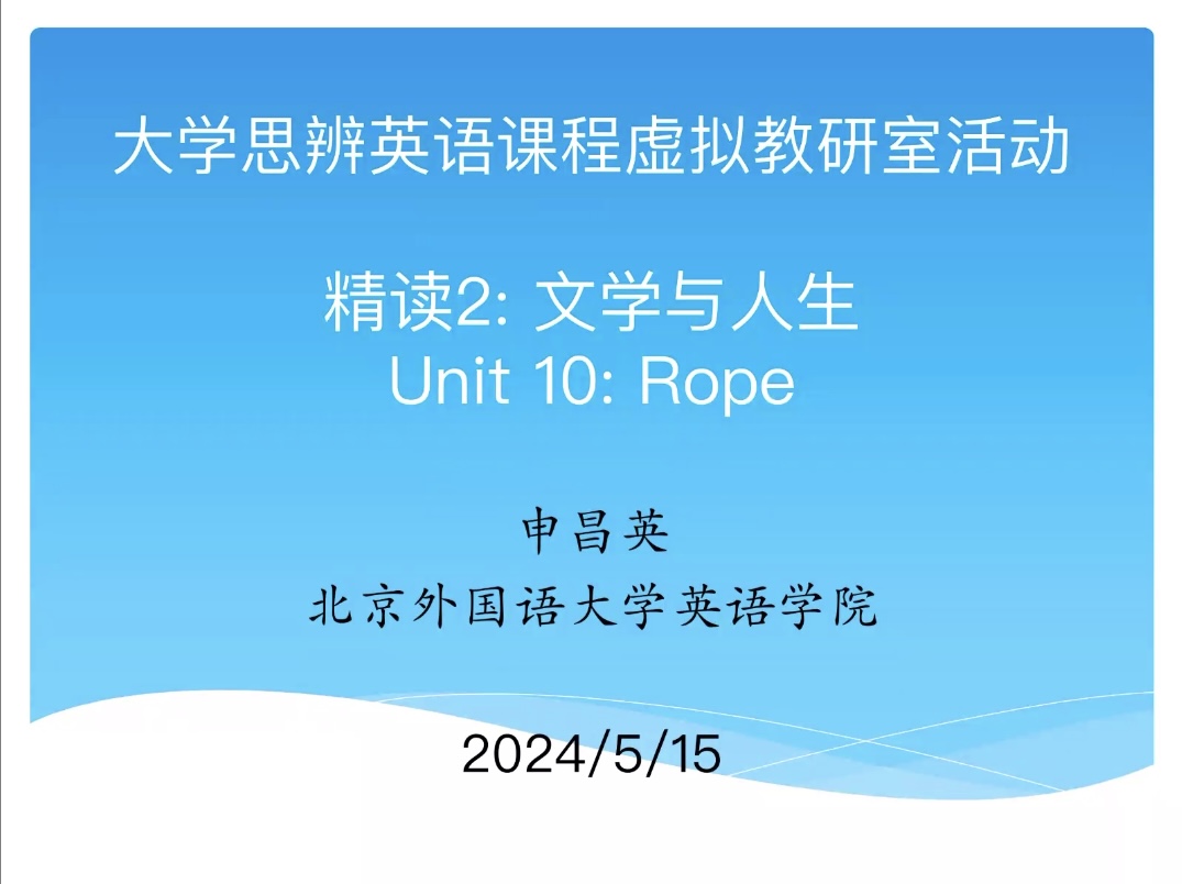 5月15-16日,教育部首批虚拟教研室建设试点“大学思辨英语课程虚拟教研室”成功举办2024年春季第二期虚拟教研活动。此次教研活动由米兰milan官方网站思辨英语精读一年级课型组承办。活动邀请申昌英副教授作为教研主讲专家,针对大学思辨英语精读教学,围绕“学生预习及课堂展示活动安排”开展说课和在线直播教学展示两项活动,来自全国各高校1400多位教师在线观摩参与。