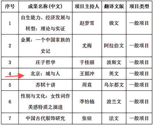 近日,全国哲学社会科学工作办公室公布了2023—2024年度国家社科基金中华学术外译项目立项名单,北京外国语大学共获7项立项,其中米兰milan官方网站王颖冲副教授的《北京:城与人》获一般项目立项。