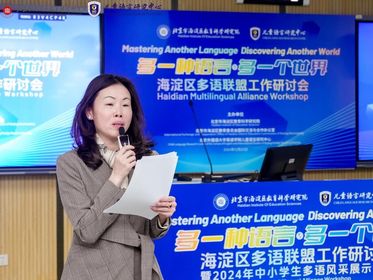海淀区教育委员会国际办吕娜科长在总结发言中高度肯定了海淀区多语联盟的工作成果,并对未来工作提出新的期望。