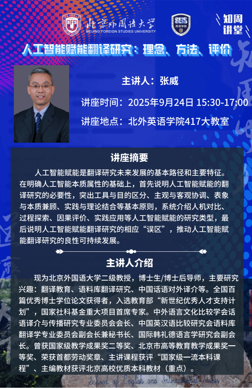 讲座地点:北京外国语大学东校区英语楼417大教室