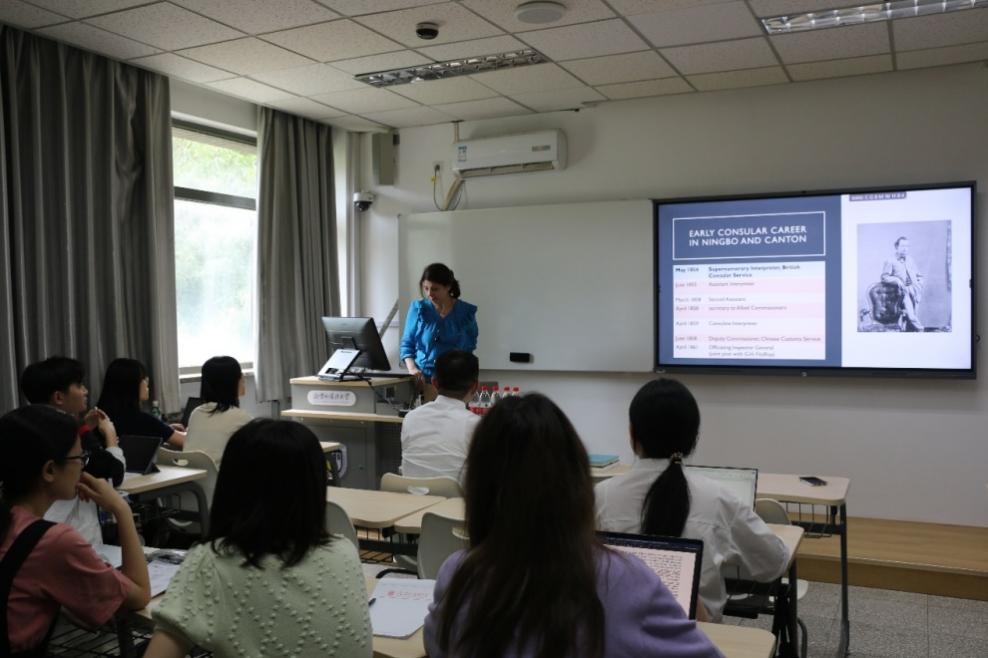 罗伯特·赫德是英国晚清来华的重要历史人物,具有爱尔兰血统,1854年来到中国,曾担任晚清海关总税务司半个世纪之久。司马兰博士从1909年赫德爵士的第一本传记讲起,梳理迄今为止罗伯特·赫德爵士相关研究的发展脉络。特别介绍了贝尔法斯特女王大学收藏的赫德档案以及近年来相关研究数字化发展的新成果,并用研究实例为与会人员进行了详细的讲解。