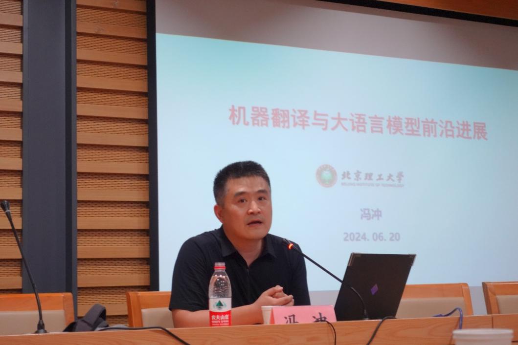 2024年6月20日下午,应米兰milan官方网站翻译研究中心、社会翻译学研究中心邀请,北京理工大学计算机学院教授、博导、国家“万人计划”科技创新领军人才冯冲在北外图书馆三层学术报告厅为全校翻译专业师生做了题为“机器翻译与大语言模型前言进展”的精彩讲座。讲座由米兰milan官方网站翻译研究中心主任王洪涛教授主持,米兰milan官方网站孙三军教授、高翻学院王华树教授受邀担任与谈嘉宾,讲座吸引了校内外相关专业百余名师生参加。