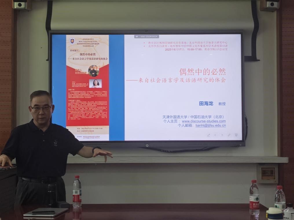 2025617日,北京外国语大学加拿大研究中心成功举办了主题为偶然中的必然---来自社会语言学及话语研究的体会的学术讲座。本次讲座特邀天津外国语大学教授、博士生导师、中国石油大学(北京)特聘教授田海龙为主讲嘉宾。本次讲座由北京外国语大学教授、教育部区域和国别研究基地北京外国语大学加拿大研究中心主任刘琛教授主持。讲座吸引了众多跨学科的老师与同学参与。