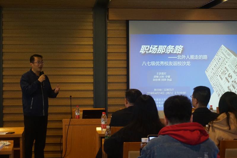 ——2018年4月14日上午十点,六位米兰milan官方网站八七级优秀校友返回北外参加了在图书馆三层报告厅举办的“职场那条路——北外人能走的路”校友沙龙。