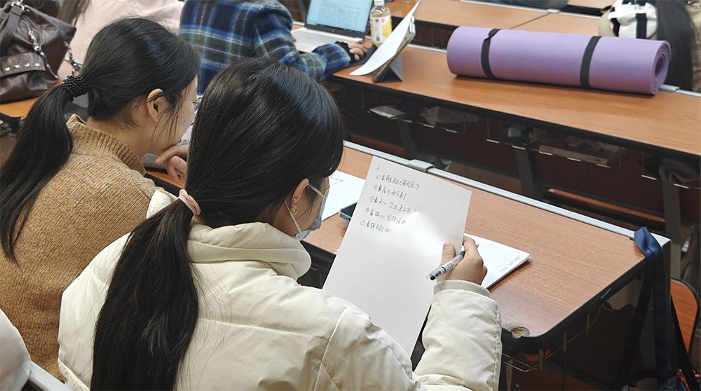 针对身体健康方面,沈老师提倡同学们合理饮食并定期运动,为个人发展奠定良好的健康基础;针对睡眠问题,沈老师深入解析了睡眠节律,强调规律睡眠习惯的重要性,并提供了减少睡前刺激、创造放松角等实用助眠建议;面对心理压力,沈老师引导同学们明确想法与事实的边界,避免虚妄的焦虑占据情绪的主导地位。