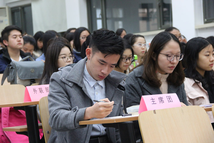——郁凯伦详细介绍了团学联各部门工作职能及主要活动安排,并鼓励新成员始终保持优秀的学习品质,提高自身工作技能,拓宽工作视野,期待新一届的团学活动更加丰富多彩。