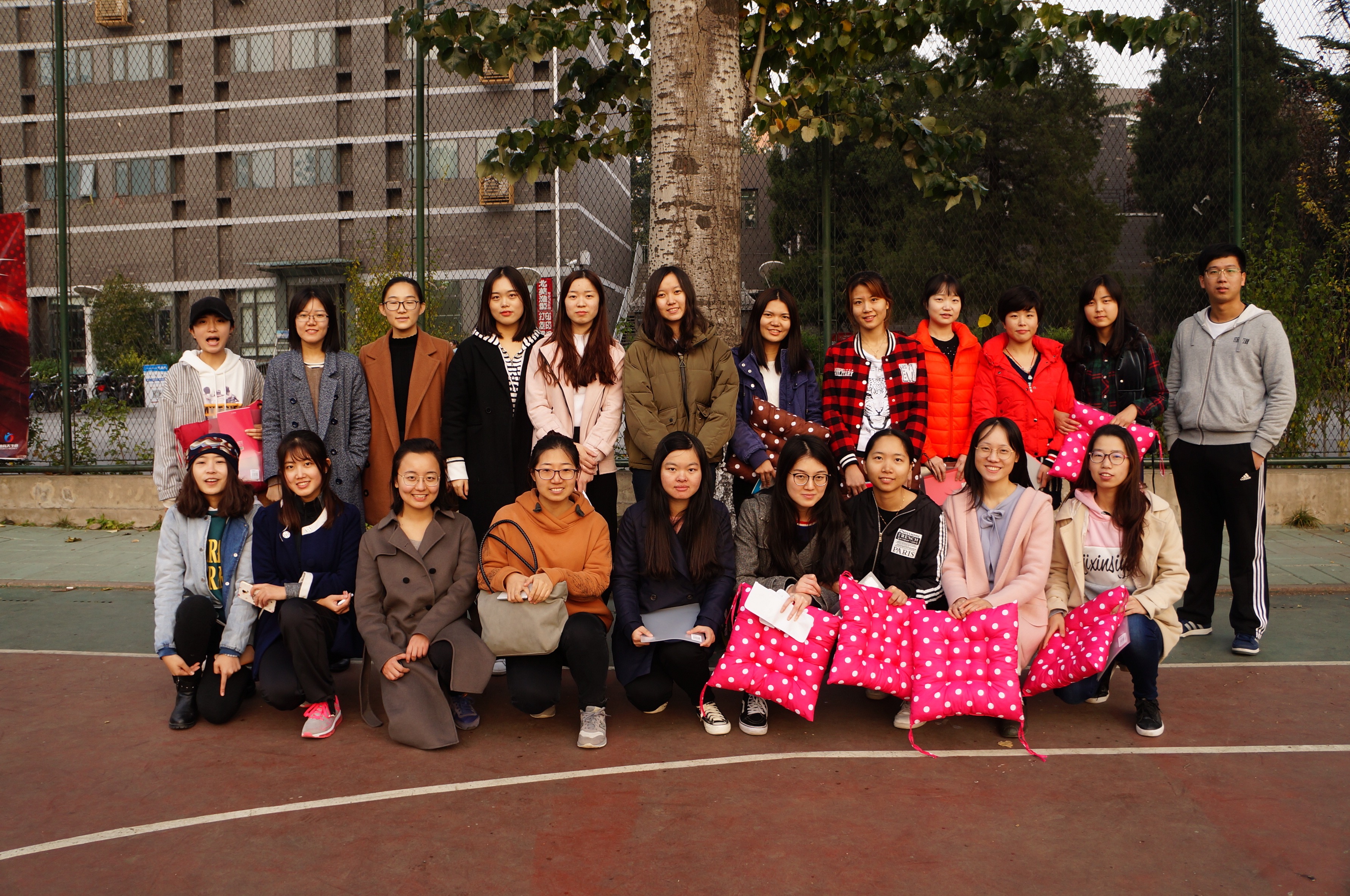 ——本次趣味运动会采用临时分组的团体赛形式,由研一笔译1班、笔译2班、语言学、爱研、英研、美研、澳研及研二的同学组成四支队伍参赛。“花样接力”活动中,同学两两搭配,协作完成背对背运篮球、两人三足,运球跑游戏。同学们由开始的生涩,逐渐磨合成默契的搭档,团队协作,屡创佳绩。