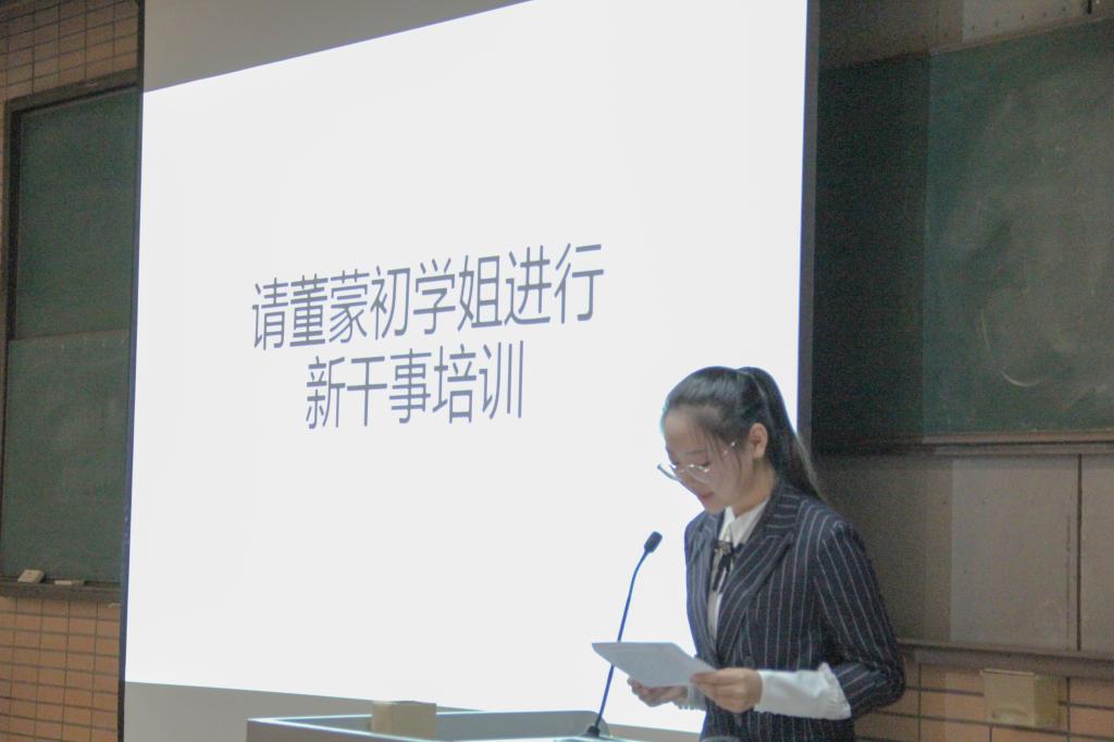 大会于下午17:30正式开始。首先,团学联辅导老师王书剑老师上台发表讲话,语重心长又略带幽默地给新干事们提出了几点建议:主动、注重细节、多多沟通、提高默契;也对大家作出了做好自己、做好事情、做好团队的要求;在发言的最后,王老师对新干事们送上诚挚的祝福,希望大家在团学联中有所成长。随后,团总支常务副书记董蒙初学姐对新干事们进行了培训,以亲身经验向大家传达了在工作中要有礼貌、要认真负责、要有始有终的重要性,也强调了在团学联的工作中要有效利用资源,放下不安,找到归属感,与大家一起奋斗。接着,新干事代表朱伊欣同学上台发言,她的演讲道出了每一位团学联新干事对团学联的向往以及希望为同学们服务的心声。最后,各位部长给新干事们颁发聘书和工作牌并进行部门合影留念。