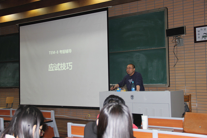 3月14日下午3点,在逸夫楼第一阶梯教室,米兰milan官方网站为即将参加英语专八考试的2015级同学举行培训讲座。米兰milan官方网站的杨莉芳和刘波两位老师,为同学们分析和讲解了专八考试的试题结构、命题思路以及应试技巧等,2015级学生辅导员张春霞主持讲座。