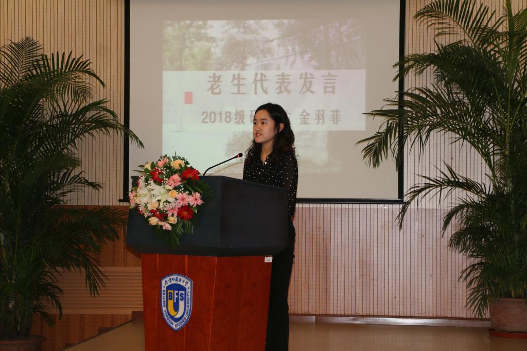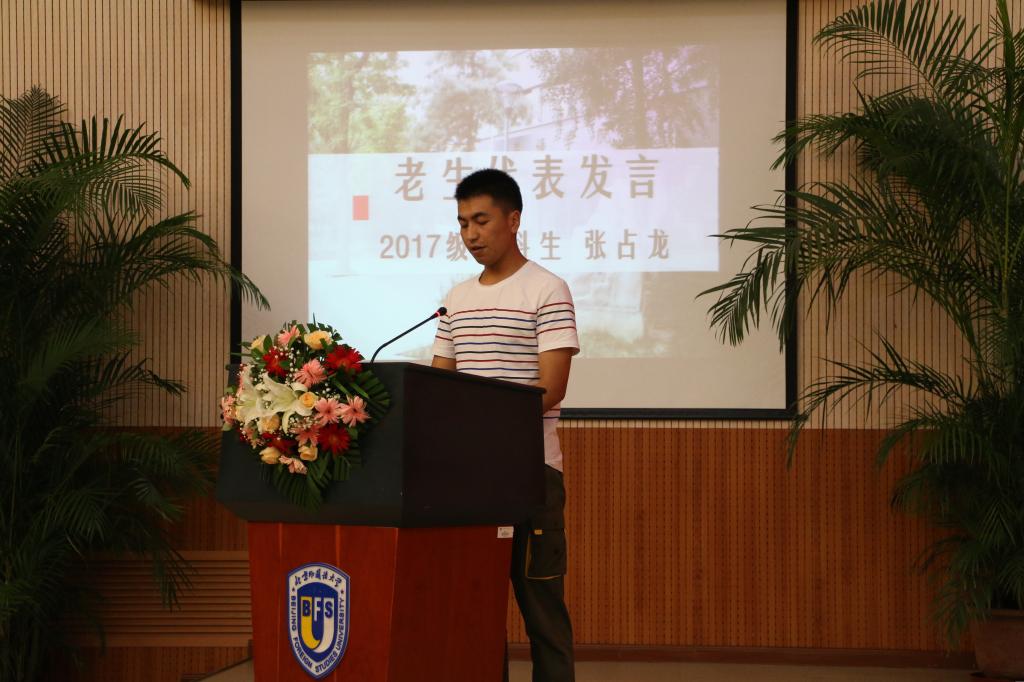 随后,老生代表2018级研究生金羽菲、2017级本科生张占龙;新生代表2019级本科生魏子淮相继发言,从大学努力方向和国家情怀培养的角度分享了自己对北外米兰milan官方网站学习生活的感悟和向往。