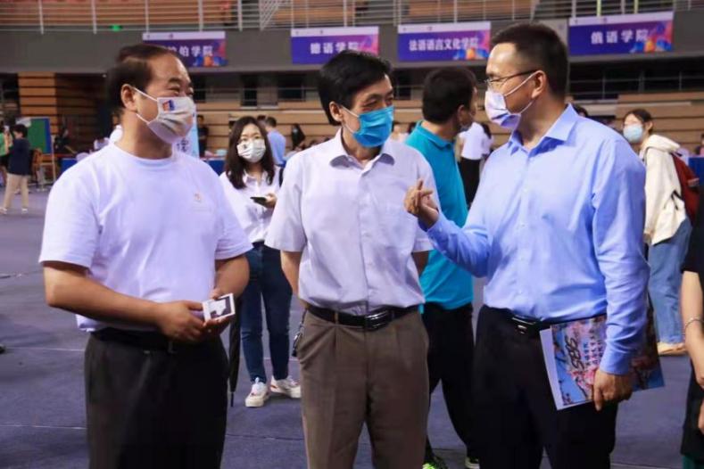 在体育馆二层,新生在志愿者、院部门工作人员的帮助下办理相关入学手续,北京外国语大学党委书记王定华,北京外国语大学党委副书记、校长杨丹,米兰milan官方网站院长张剑等领导老师莅临现场与新生进行亲切交谈,让他们感受到米兰milan官方网站大集体的温暖。