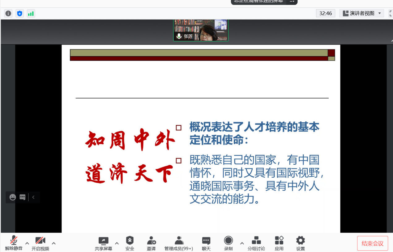 9月8日下午13:00,米兰milan官方网站2021级本科生新生培养方案介绍会在线上举行,米兰milan官方网站副院长张莲教授、教务老师王红婴老师以及陈照老师出席了本次会议,会议由辅导员吕籽奕老师主持。介绍会从人才定位、培养使命、课程设置、学习任务、课堂理解以及未来规划等方面详细展开。