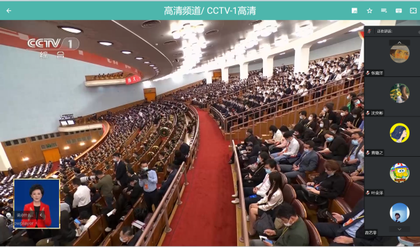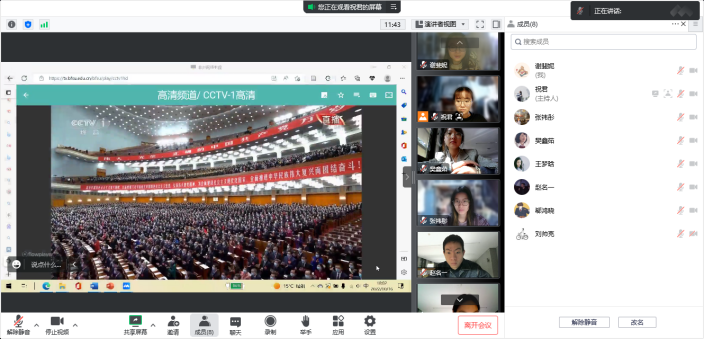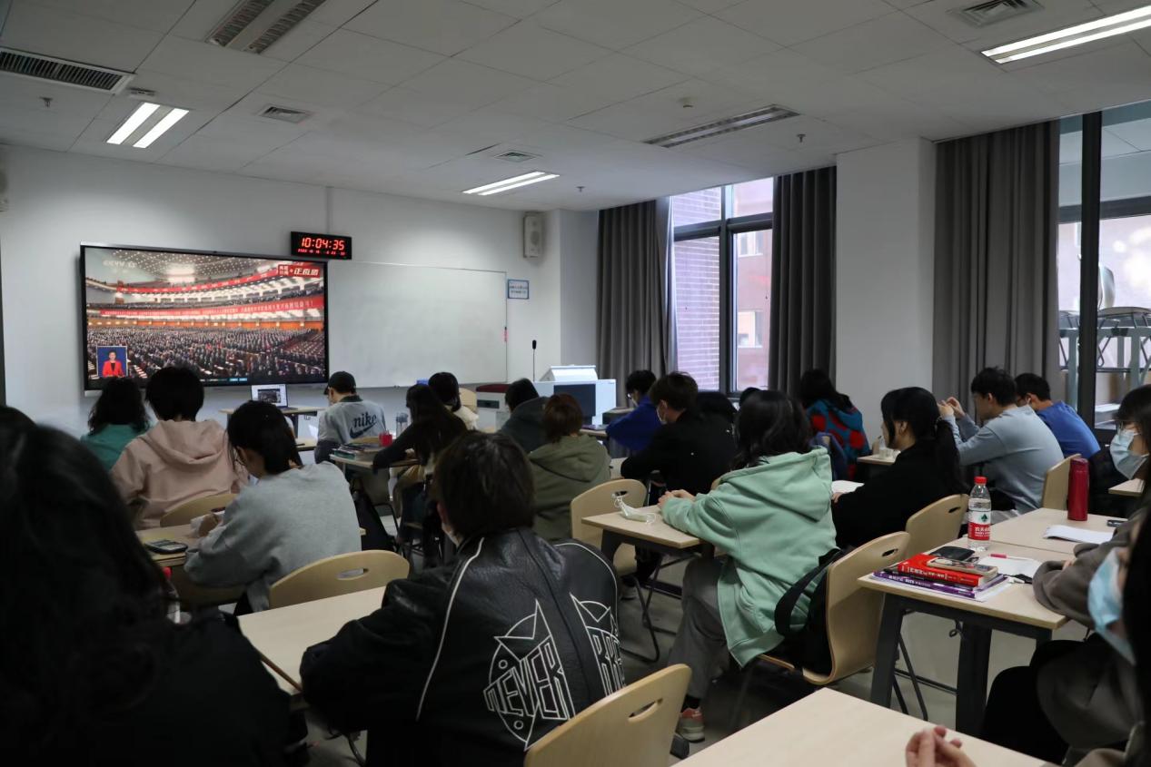 在米兰milan官方网站会议室,领导班子成员和师生代表共同观看直播。按照学校安排,党总支书记和院长在晨读厅主会场观看直播,60名学生代表在千人礼堂观看直播。全体教师和本科生、研究生、预科生在线观看直播。