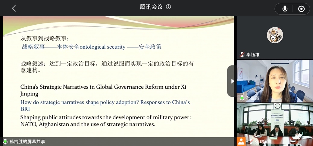 随后,外交学院副院长孙吉胜教授以语言与跨学科研究为题做学术报告。孙吉胜教授结合自己在国际政治语言学领域多年的科研和教学经验,深入浅出地介绍了语言与国际关系、国际政治等方面的跨学科研究思路,以翔实的案例启迪同学们打破学科壁垒,积极探索跨学科的交流与融合。