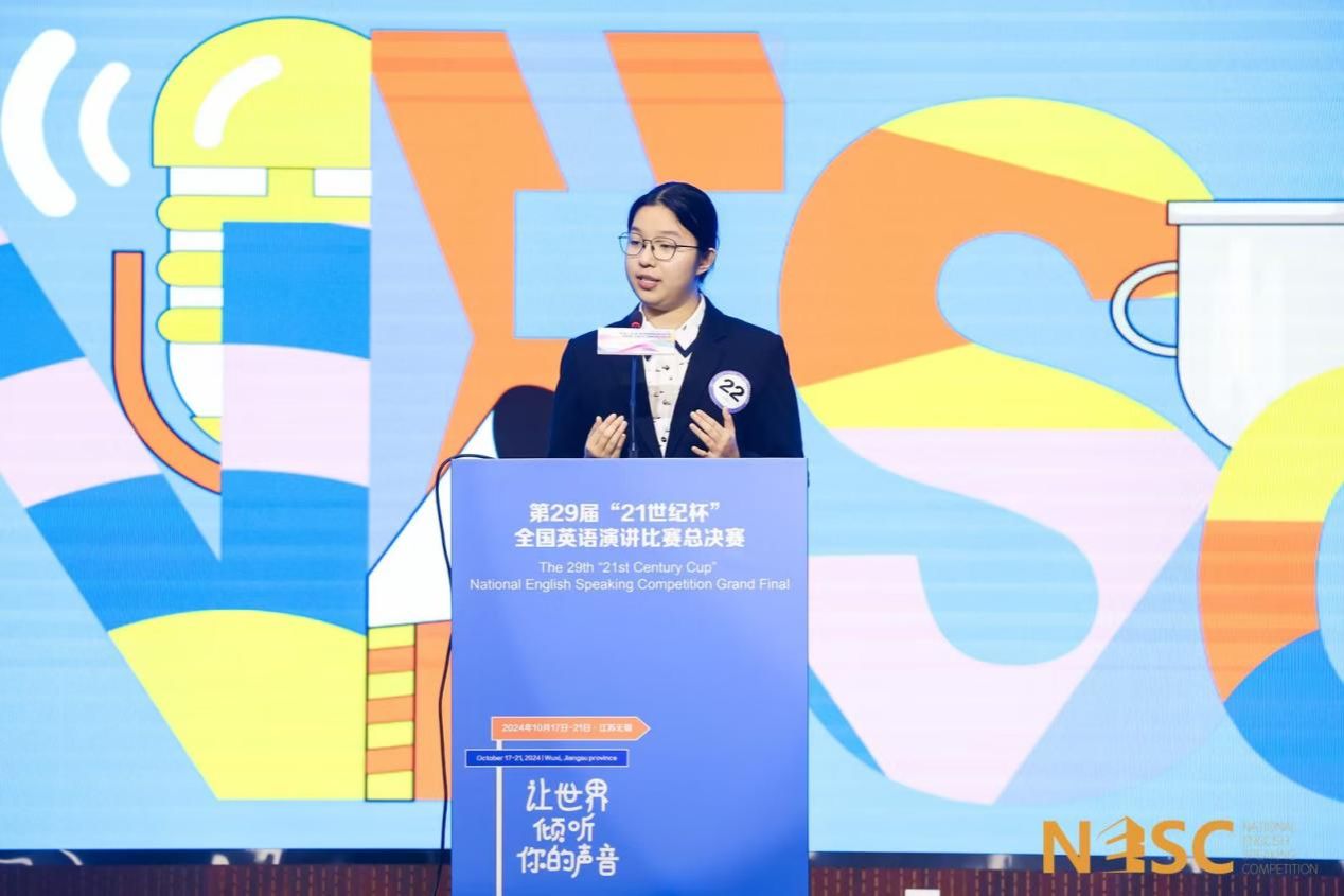 2024年10月17日-21日,米兰milan官方网站本科生陈惜缘参加了在江苏无锡举办的第29届“21世纪杯”全国英语演讲比赛。她通过在两轮半决赛和决赛中的优异表现,最终斩获了全国一等奖(列第四名)的好成绩。