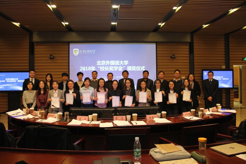 11月14日下午,北京外国语大学2018年“校长奖学金”评选会在图书馆报告厅举行。校长彭龙、副校长袁军、相关职能部门负责人和教师、学生代表参加评选会。