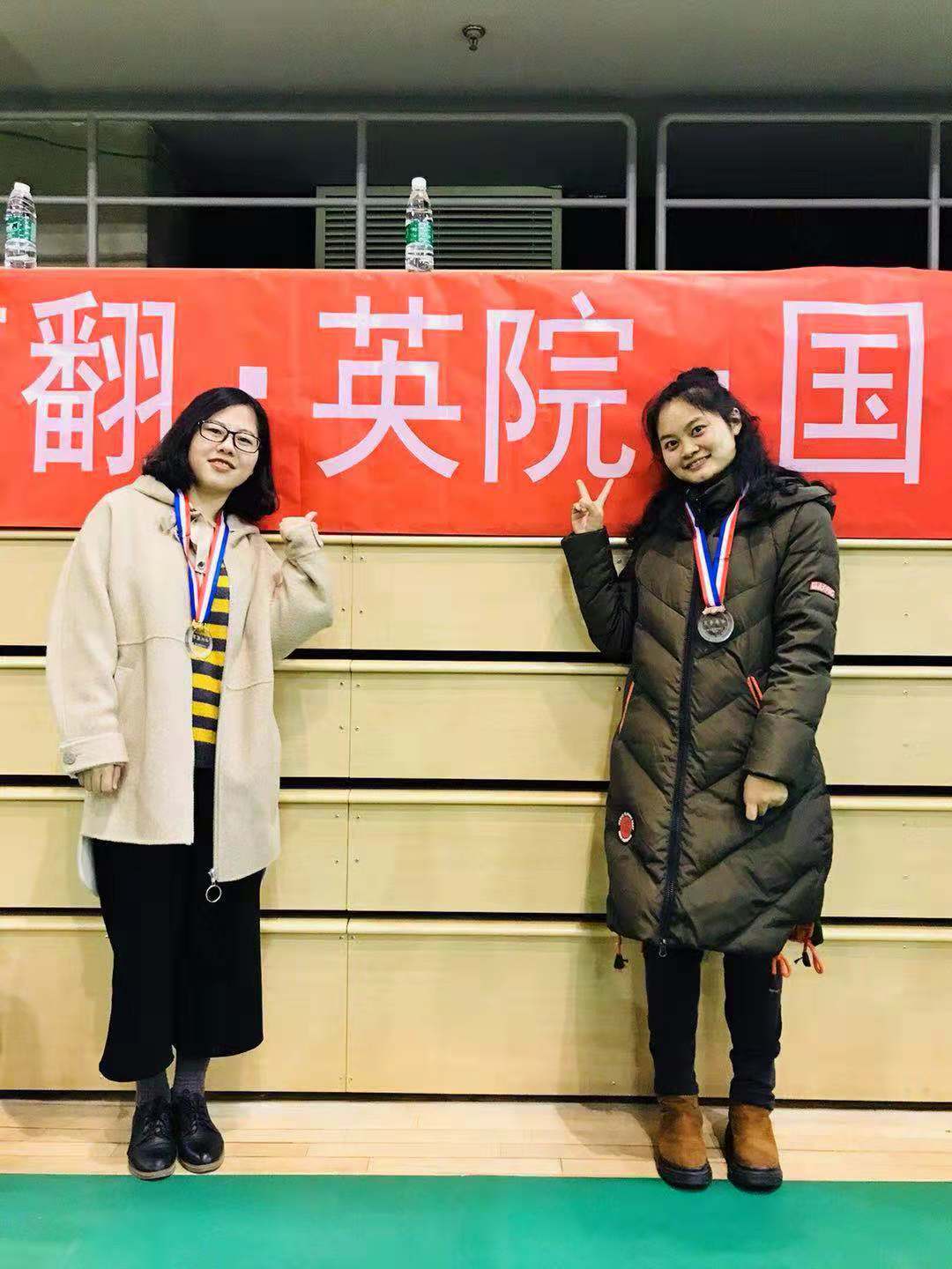 男双比赛最后举行,我院选手徐弘园和王子若配合默契,面对强大的对手,他们克服压力,冷静应对,在与高翻的比赛中,比分一度僵持不下,最终以一球之差惜败;在与国商比赛中,两位选手继续保持状态,无奈对方攻势太盛,英院选手最终不敌国商选手。