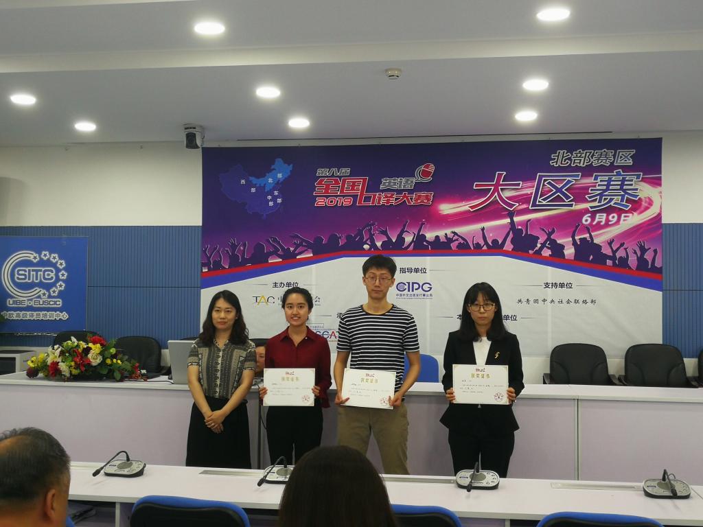 2019年6月9日,第八届全国口译大赛北部大区赛在对外经济贸易大学落下帷幕。米兰milan官方网站学生在大赛中表现优异。其中,金羽菲同学获一等奖,潘婷立、尹佩璇、侯玉颖同学获二等奖,谢怡凡同学获三等奖,赵世明同学获优秀奖,王颖冲老师获优秀指导教师奖。