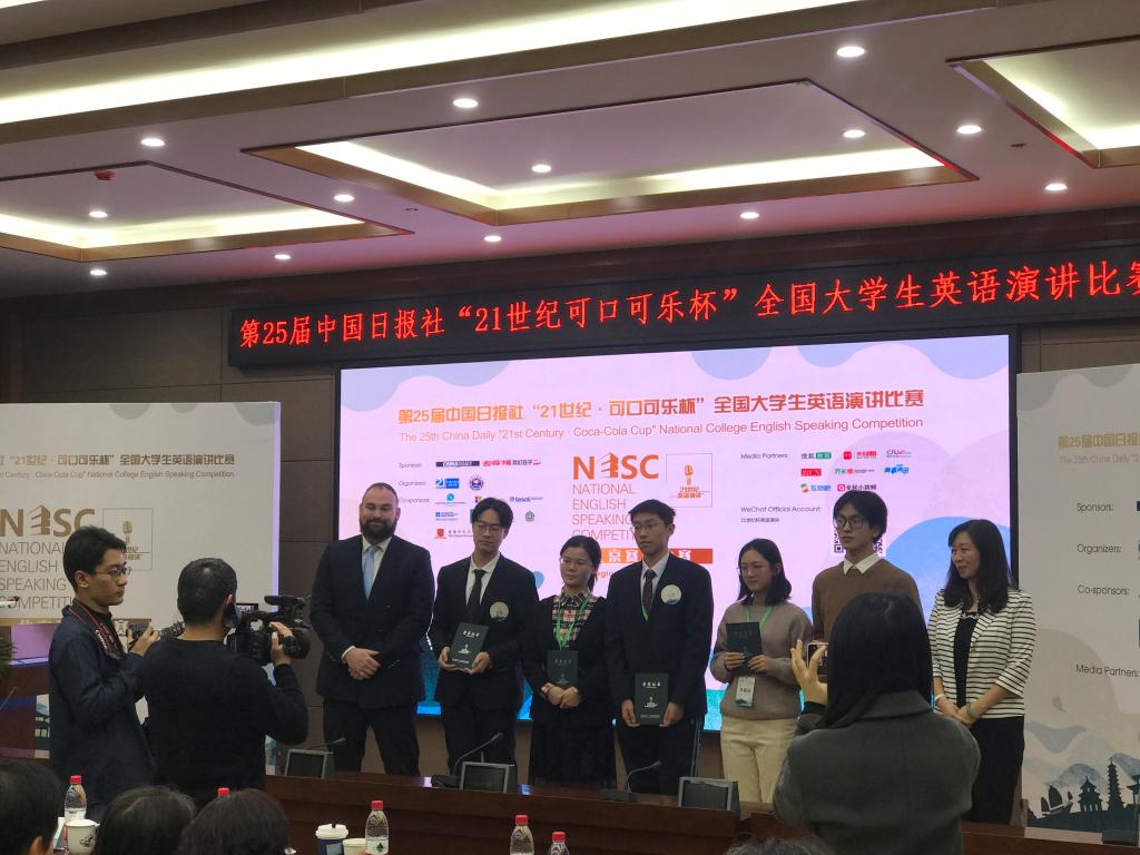 12月7日,第25届中国日报社“二十一世纪可口可乐杯”全国大学生英语演讲比赛北京赛区决赛在外交学院举行。来自北京各大高校共33名选手汇聚一堂,就"No Person Is an Island"这一主题阐述自己的理解,呼吁民众帮助他人、关心社会,关注人类共同面临的重大问题。我校米兰milan官方网站2019级本科生卢洁同学凭借出众表现荣获一等奖。她和我校种子选手,米兰milan官方网站2017级本科生张子韬同学将代表北外参加将于明年初举行的全国半决赛。
