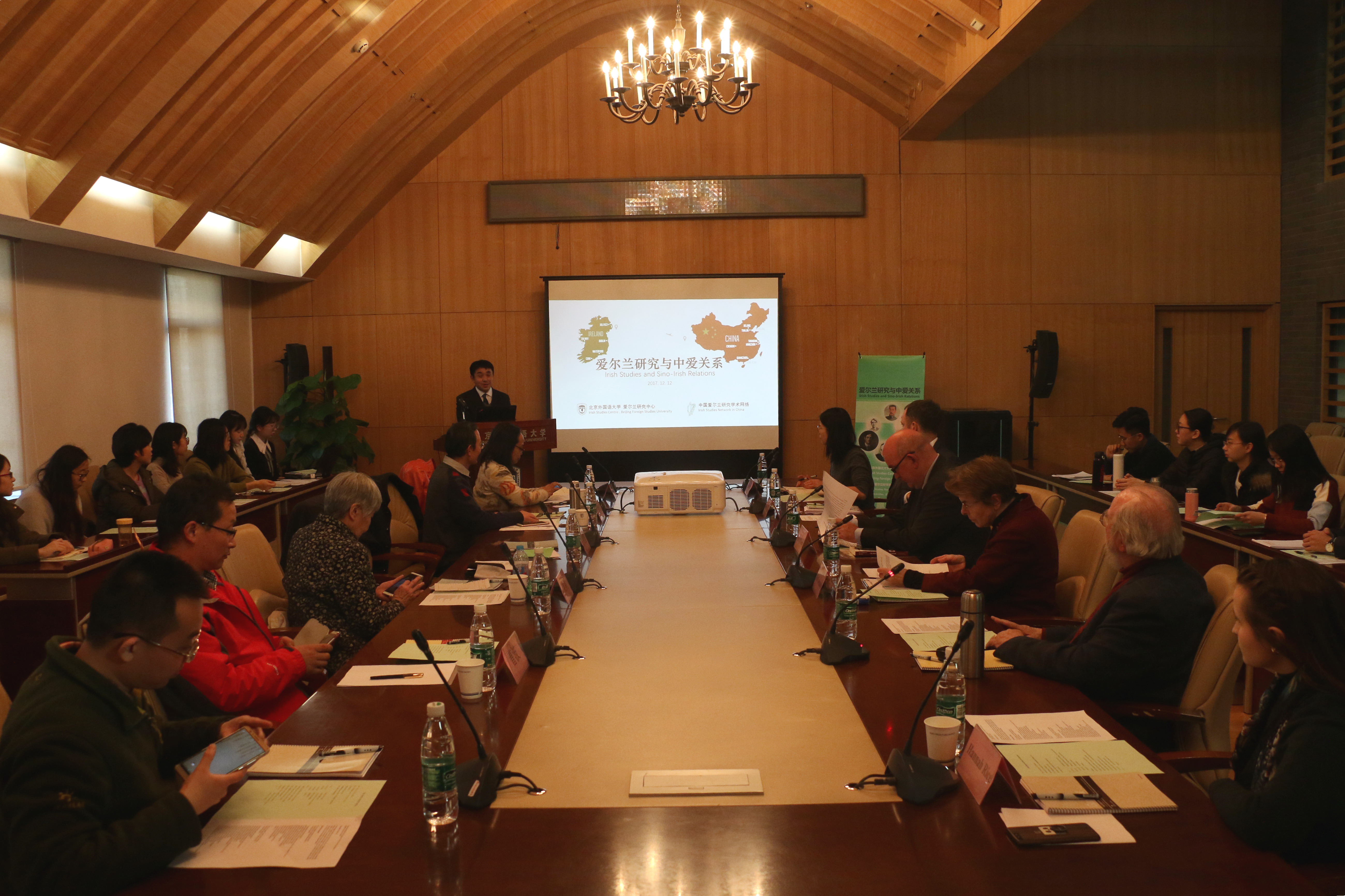 ——来自爱尔兰都柏林大学、梅努斯大学、北京第二外国语学院、上海对外经贸大学、湖南师范大学及我校的专家学者就中爱关系、爱尔兰文学在中国的翻译与接受、中国爱尔兰研究的发展、爱尔兰语教学等问题做主题发言。