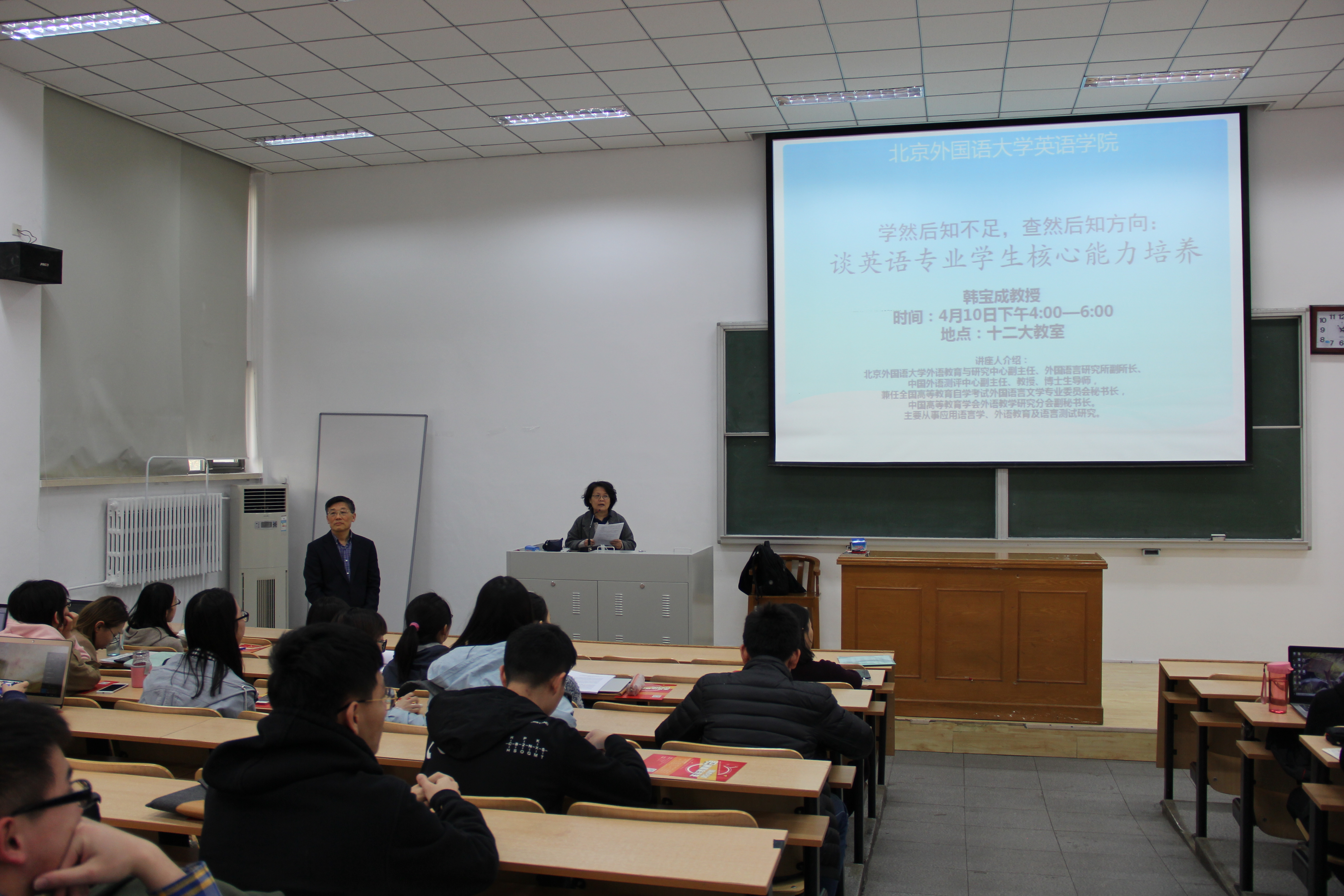 ——4月10日下午4:00,我校十二大教室,米兰milan官方网站邀请了我校外语教育与研究中心副主任、外国语言研究所副所长、中国外语测评中心副主任韩宝成教授为学生们做了“学然后知不足,查然后知方向:谈英语专业学生核心能力培养”的学术讲座。米兰milan官方网站副院长张莲教授主持讲座,辅导员张春霞组织协调。