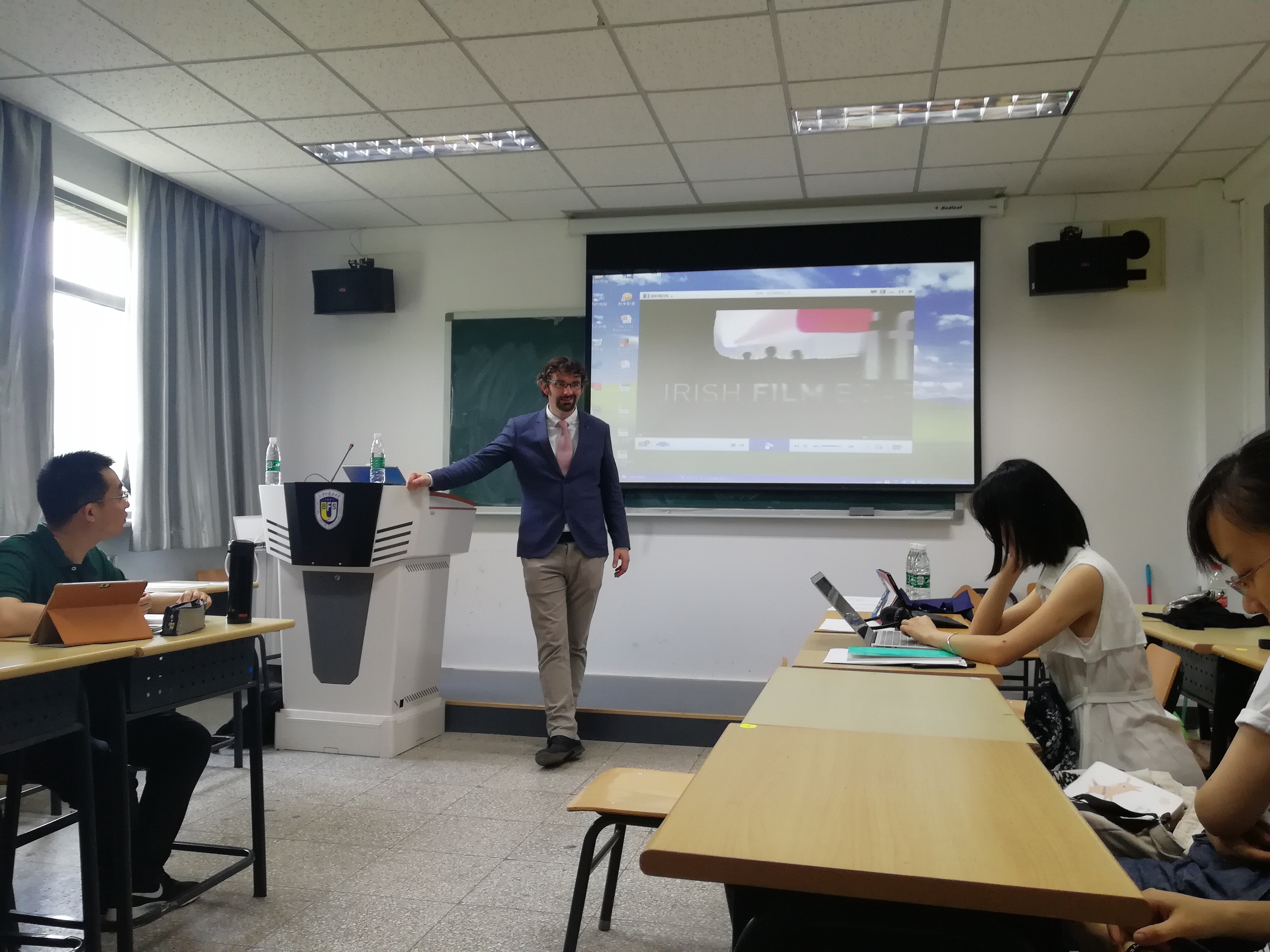 ——为纪念《复活节协议》签署20周年,5月25日下午爱尔兰研究中心特邀爱尔兰导演Maurice Fitzpatrick携其新作《以和平之名:约翰•休谟在美国》在英院309教室进行学术讲座,活动由英国研究中心、爱尔兰研究中心主任王展鹏主持,英研及爱研学生参加。