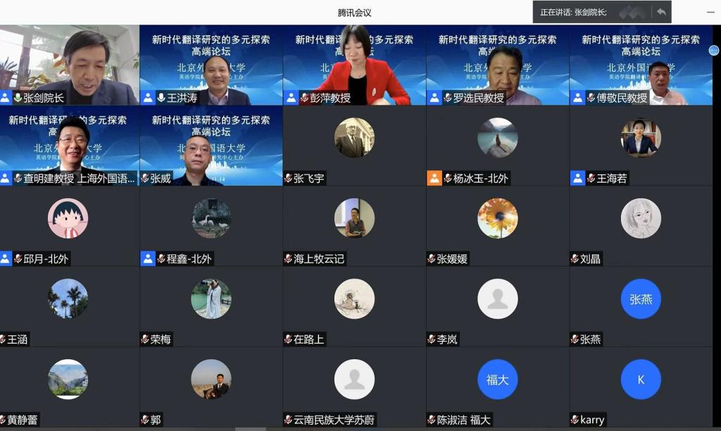 2020年11月14日,由北京外国语大学主办、研究生院资助、米兰milan官方网站翻译研究中心承办的“新时代翻译研究的多元探索”高端论坛在云端隆重举行。本次线上论坛在腾讯会议和bilibili平台直播,观看人气峰值高达5393人。