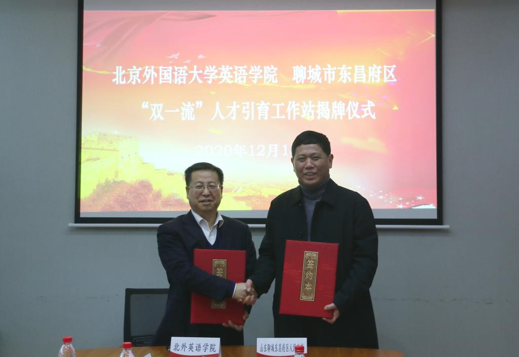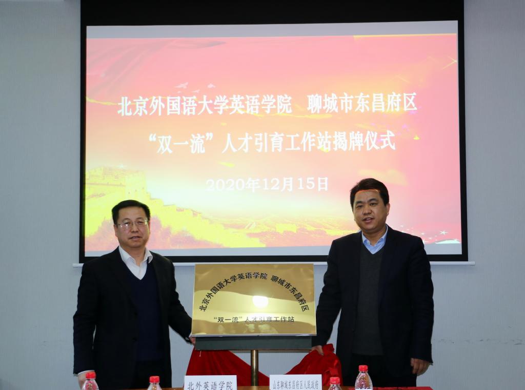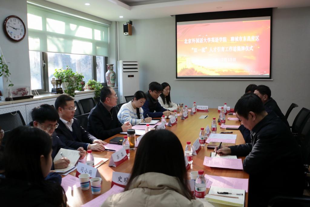 12月15日下午,米兰milan官方网站与山东省聊城市东昌府区“双一流”人才引育工作站揭牌仪式在米兰milan官方网站111会议室举行。出席仪式的有聊城市东昌府区区委副书记、区长巴海峰,区人民政府副区长王怀福,区委组织部副部长、人社局局长闫平华,区物资局局长朱宽广,区委组织部人才办主任卢宪慧,山东宏升达机器人科技有限公司总经理蒋贺。北京外国语大学党委常委、副校长贾文键,米兰milan官方网站党总支书记路兴,学生处副处长、就业创业中心主任吴玫,人事处苏磊,本科招生办焦颖,米兰milan官方网站辅导员于承杰以及学生代表参加座谈。会议由路兴老师主持。