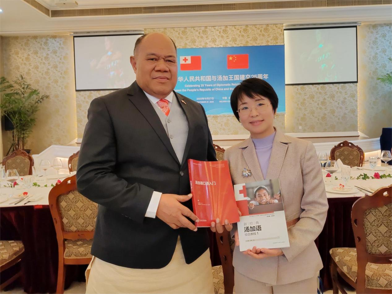 2023年10月27日,中国人民对外友好协会在北京举办庆祝中华人民共和国与汤加王国建交25周年招待会。来自外交部、中联部、商务部、相关高校与企业领导和代表,汤加在京友人和留学生代表,以及新西兰、斐济、瓦努阿图、萨摩亚、基里巴斯、巴布亚新几内亚和密克罗尼西亚联邦等国驻华使节八十余人出席活动。